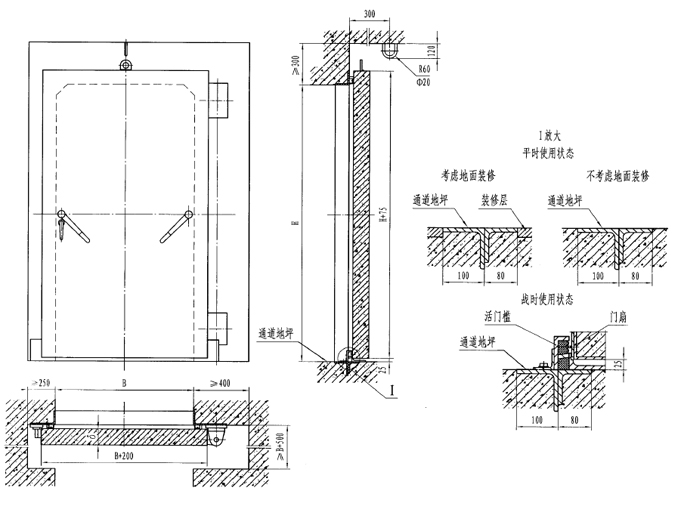 此類門的特點(diǎn)是平時(shí)不設(shè)門檻,地面平整,便于人員或車輛通行;戰(zhàn)時(shí)快速設(shè)置門檻,以滿足防護(hù)、密閉要求。