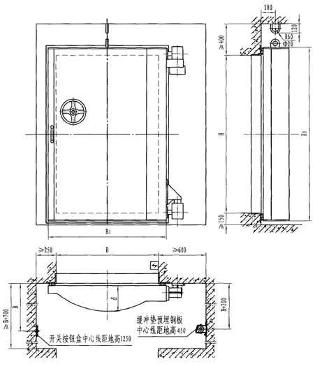 | 型號 | 門孔寬B | 門孔高H | 門扇厚δ | B1 | H1 | 啟閉時間(s) |