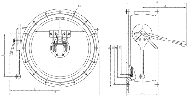 手動(dòng)雙連桿密閉閥門是設(shè)置在通風(fēng)系統(tǒng)中,其特點(diǎn)是能阻止毒劑通過管道進(jìn)入工程內(nèi)部,也可用于轉(zhuǎn)換通風(fēng)方式。