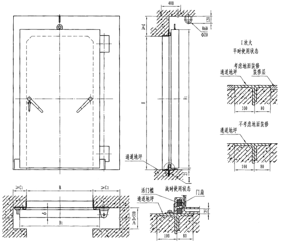 此類門的特點(diǎn)是平時不設(shè)門檻,地面平整,便于人員或車輛通行;戰(zhàn)時快速設(shè)置門檻,以滿足防護(hù)、密閉要求。
